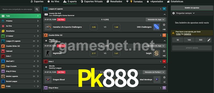 O Pk888 oferece uma grande seleção de opções de apostas em e-sports com probabilidades competitivas